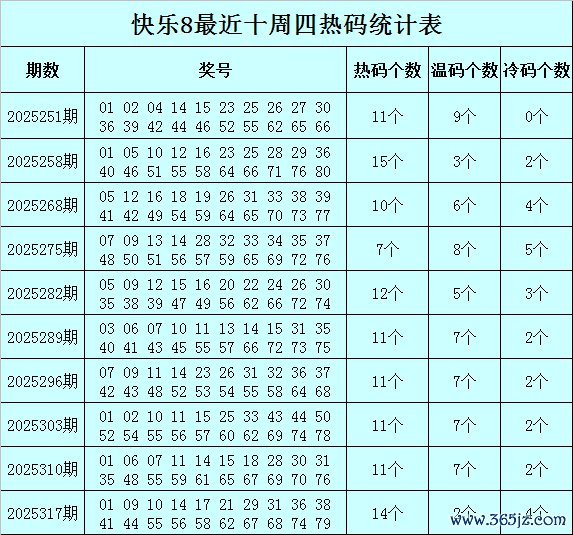 福彩气象8第2025317期(上周四)开奖转头:01 09 10 14 17 21 29 31 36 38 41 44 55 56 58 62 67 68 74 79,其中奖号遗漏总值为60,冷温热码比为4:2:14。